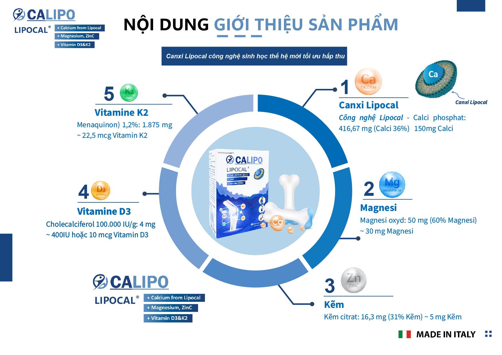 Bổ sung Calci, Kẽm, Vitamin K2 và D3 cho cơ thể. Hỗ trợ tăng cường hấp thu Calci, hỗ trợ duy trì sự chắc khỏe của xương, răng.