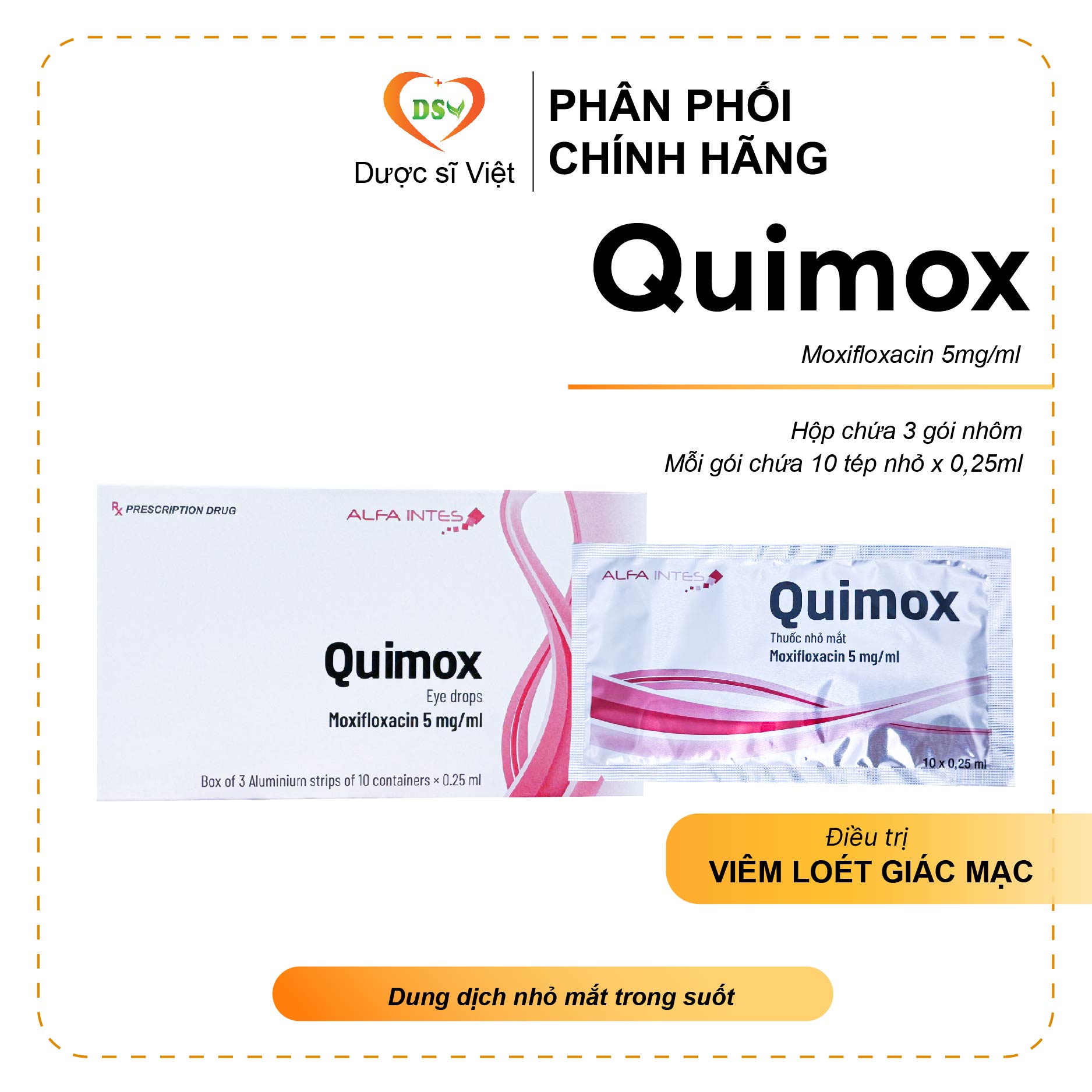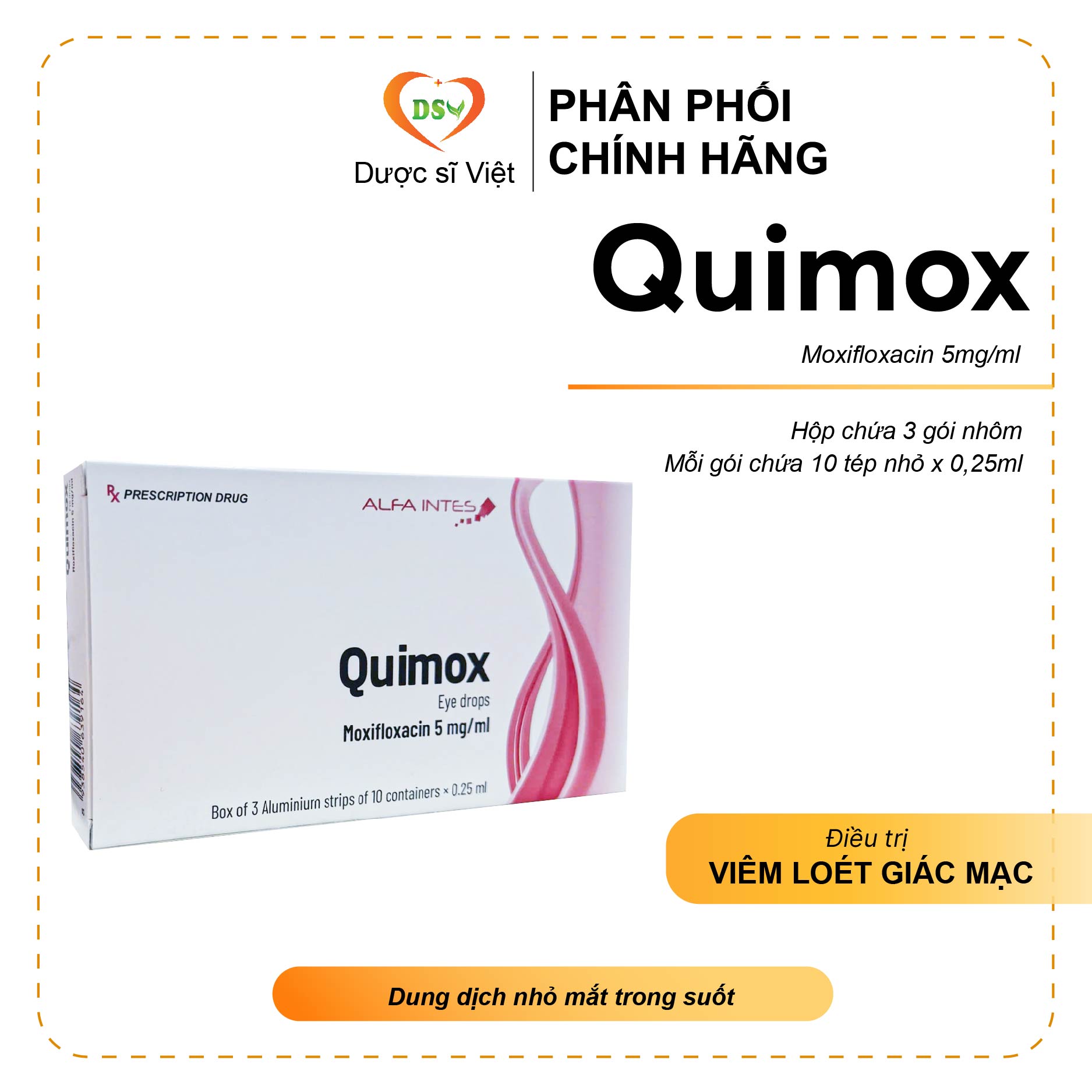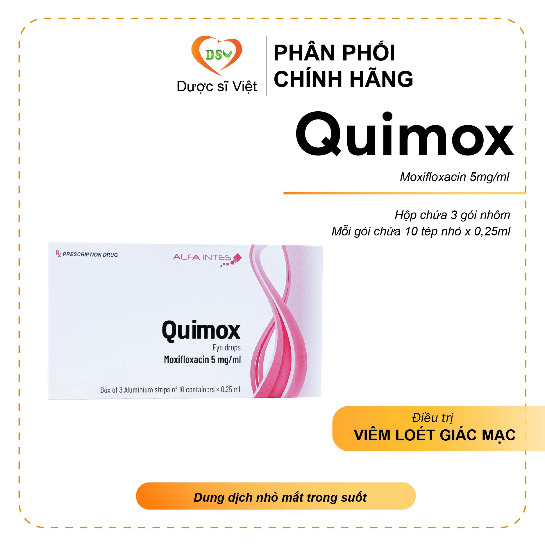 Mỗi 0,25ml dung dịch chứa: Moxifloxacin 1,25mg